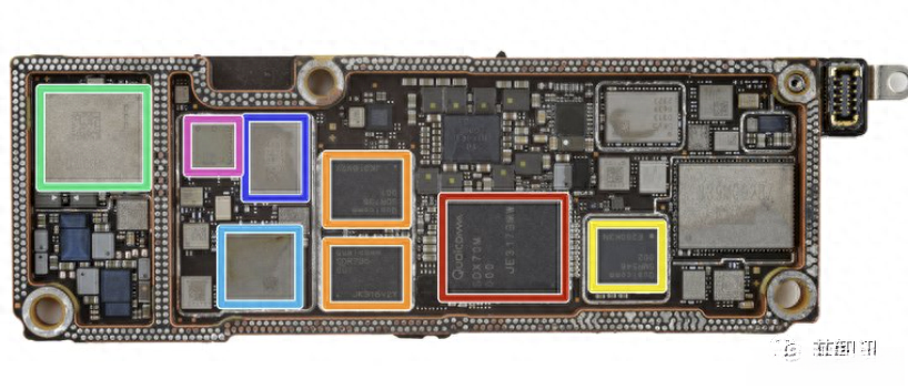 我们可以清楚的看到,iPhone 15 Pro Max主板上的高通Snapdragon X70 5G基带芯片。高通公司表示,它由人工智能为波束管理和天线调谐提供动力。