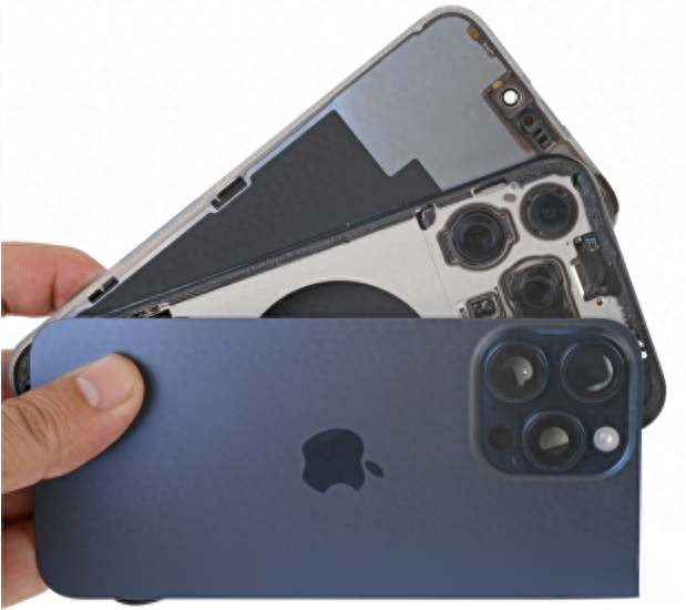 iPhone的钛金属带采用行业首创的热机械工艺,包裹着一个由100%回收铝制成的新下部结构,通过固态扩散将这两种金属以惊人的强度结合在一起。铝制框架有助于散热,并使背面玻璃易于更换。