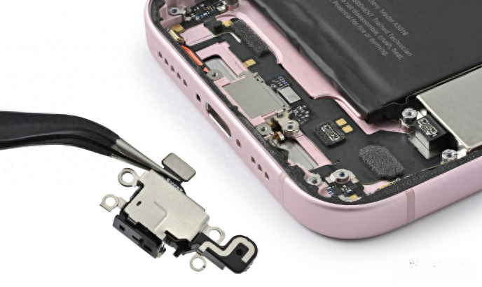 在iPhone 15系列的很多组件采用了模块化的设计,比如麦克风现在也是一个单独的组件。