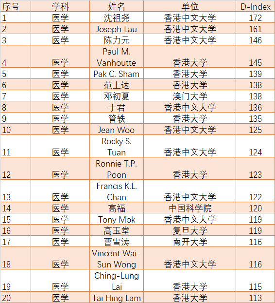 在医学领域,对多达68936名研究人员进行了分析。D指数门槛是70。