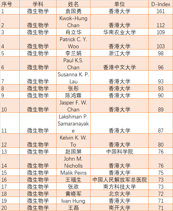 在微生物学领域,对多达43737名研究人员进行了分析。D指数阈值确定为40。