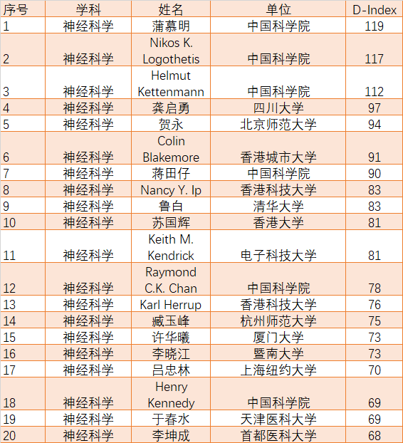 在神经科学领域,对多达27400名研究人员进行了分析。D指数阈值为30。