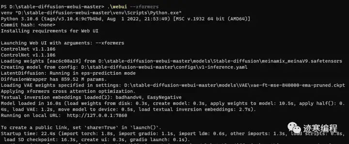 为了优化显存的使用,推理加速,可以下载可以在启动时候加入-xformers参数。将会自动下载。其它优化方法请参考github.com/AUTOMATIC1111/stable-diffusion-webui/wiki/Optimizations。
