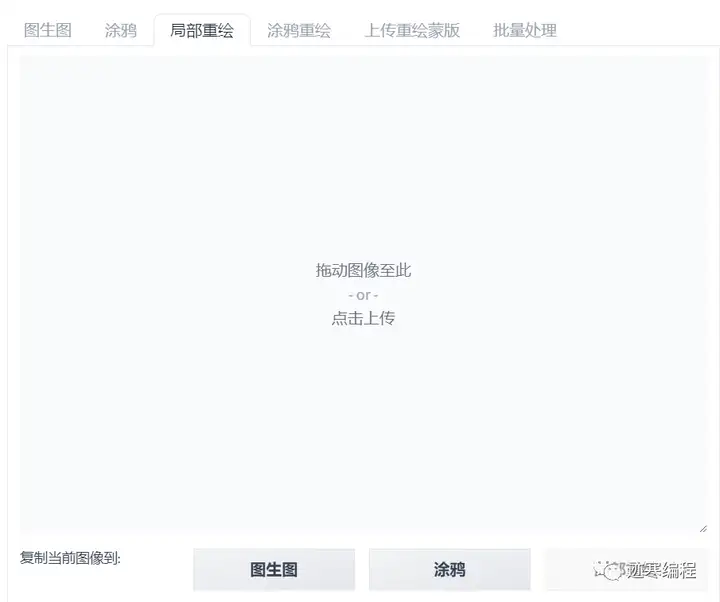 (1) 界面介绍 首先我们要导入一张图片,可以通过两种方式很方便的导入:拖到图像或者上传文件。也可以直接将文生图的图片发到这里来。