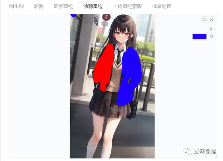举个栗子,给小姐姐穿一件红蓝外套: