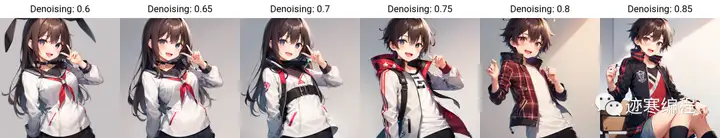 重绘幅度(Denosing strength):控制重绘幅度,数值越大,和原图差距越大,基本<0.3的时候就和原图差距很小。