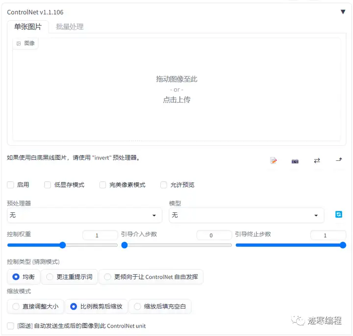 启用:选中此框以启用ControlNet,否则就不起作用。