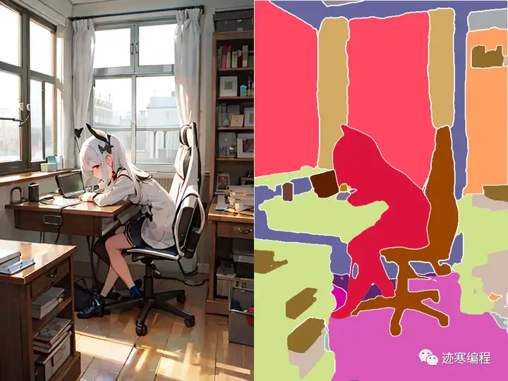 例如下面是一张小女孩学习的图片,不同的色块表示不同的区域: