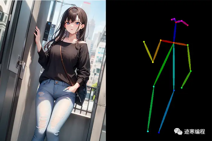 对于这张图,姿态估计图中除了手部脚部细节,可以清晰看到人物躯体,并且是符合人物比例的。