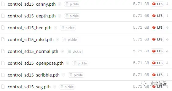 然后我们需要下载预处理器和模型。这一步可能会花比较多的时间。官方http://huggingface.co/lllyasviel/ControlNet/tree/main/models给的压缩包很大,每个都有5个多G,但是其实这些模型有很大的重复部分,这对我们这些硬盘吃紧的人来说很不友好。