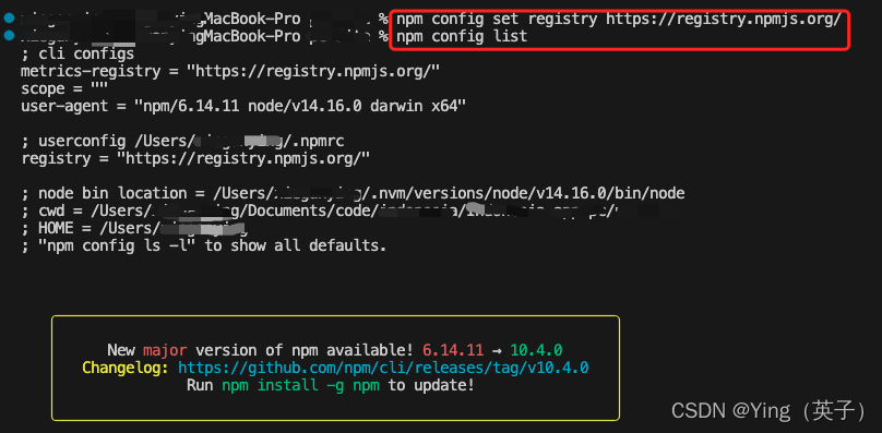 !!!注意:此处修改的镜像用的是npm本身,一般国内用户还是建议使用淘宝镜像,所以推荐还是设置成用淘宝镜像,执行:npm config set registry https://registry.npmmirror.com 【推荐】