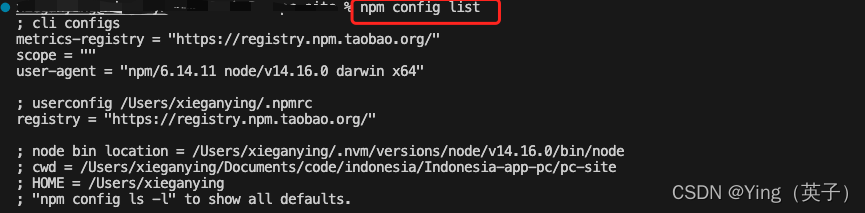 1、查看当前的npm镜像设置:npm config list